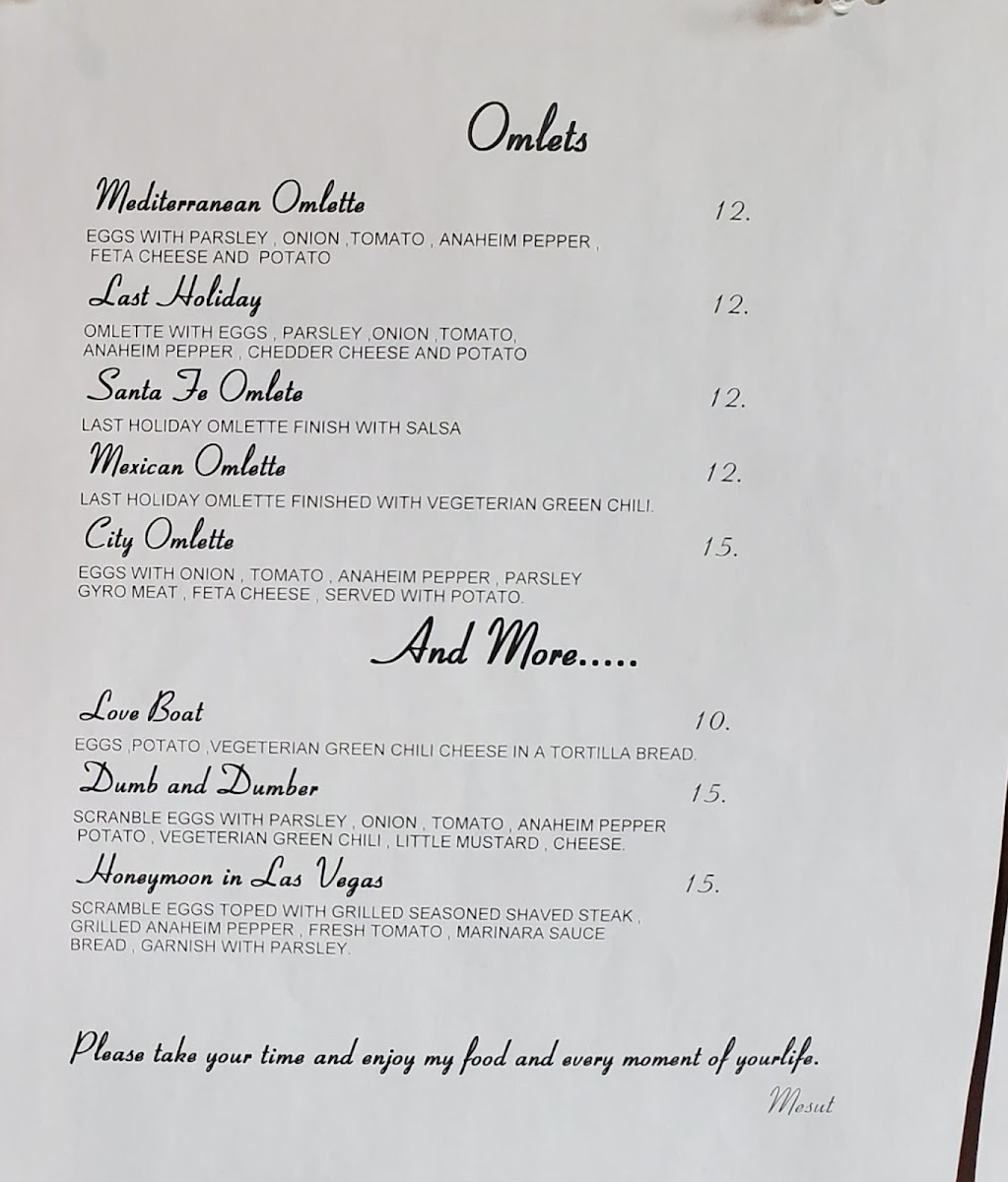 Mornings might find you enjoying comforting pancakes or inventive egg dishes like the Dumb and Dumber omelette, while later in the day, sandwiches such as the Philly Cheese Steak or Gyro Burger pair naturally with handcut fries or onion rings. For lighter fare, salads and unique items like Turkish dolma offer a satisfying option that complements the cozy atmosphere.
